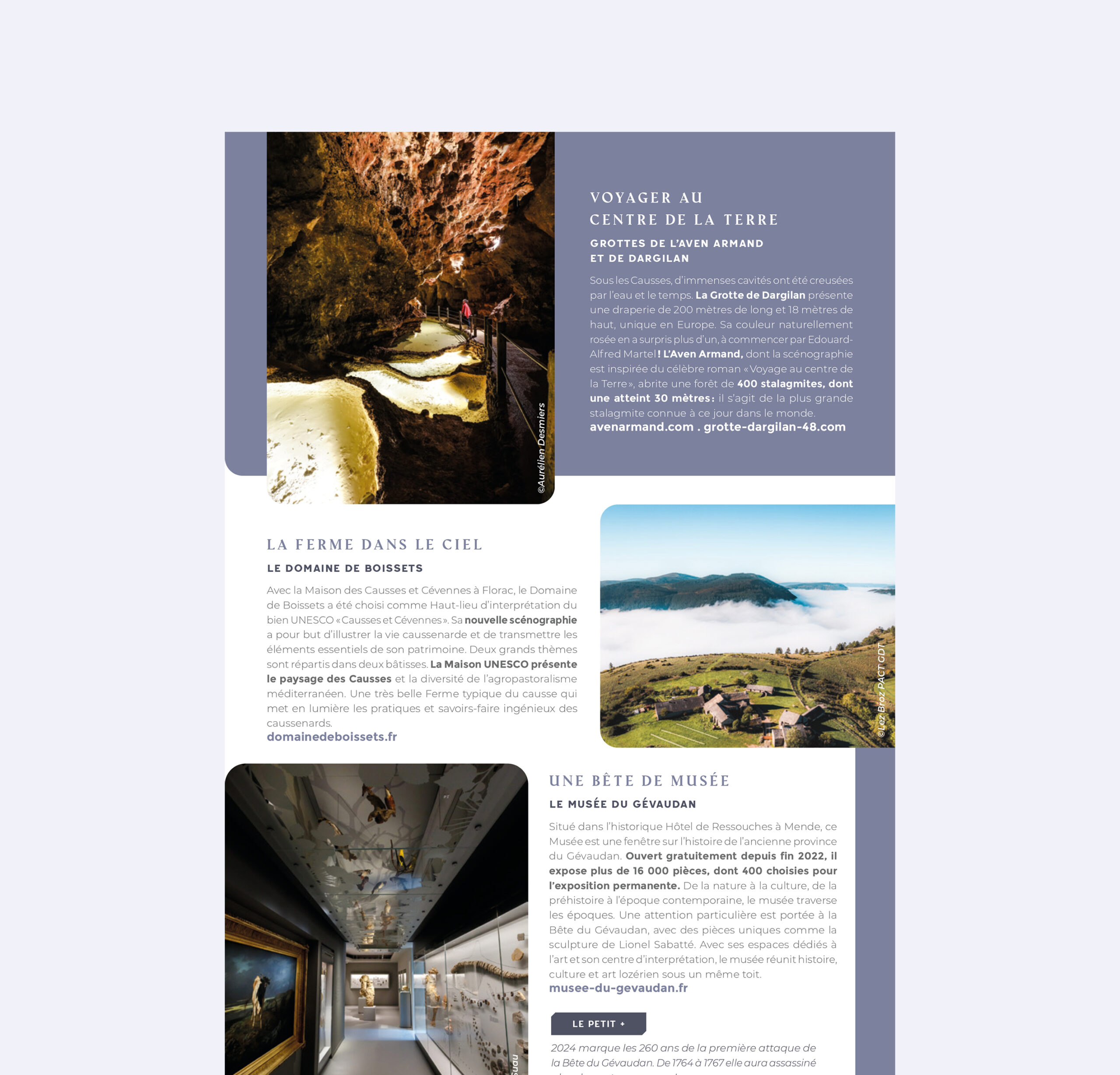 Mise en page du Dossier de Presse de Lozère Tourisme