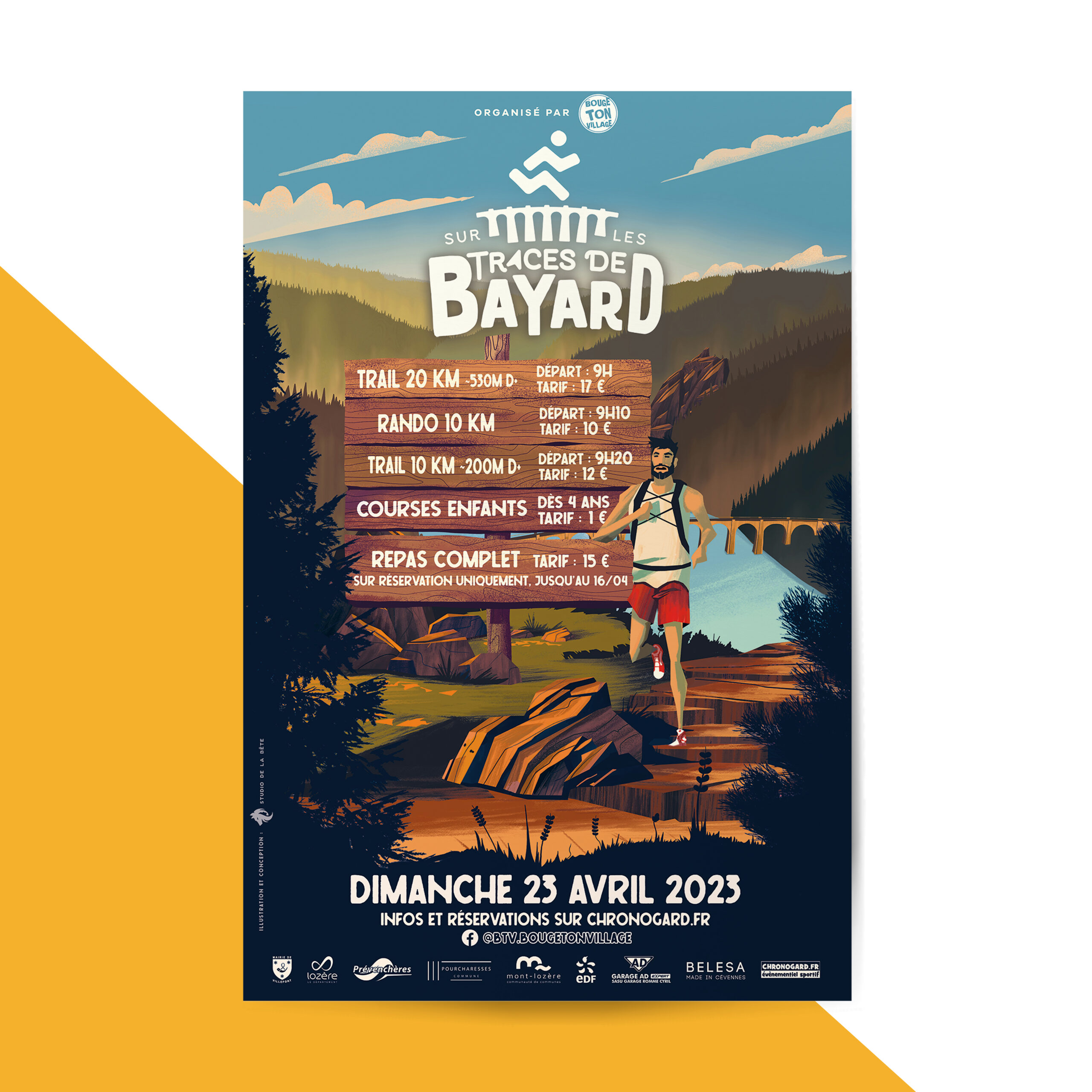 Création du logo, illustration et impression de l'affiche de la première course de trail à Villefort.
